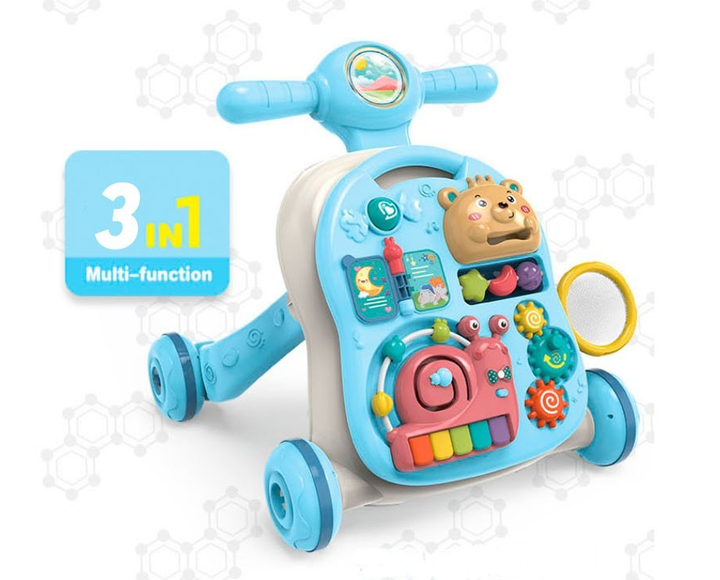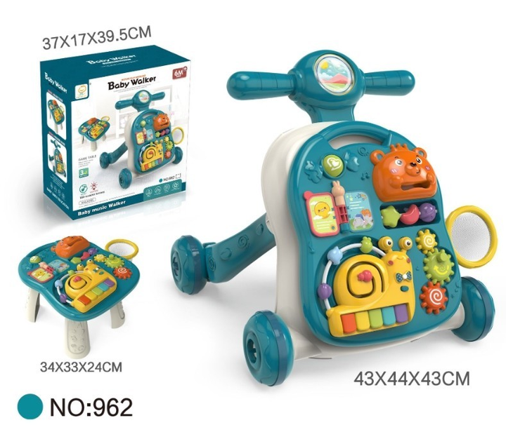 Дитяча Каталка-Ходунки-Ігровий столик 2в1 з баскетбольним кільцем, піаніно, світлові та звукові ефекти Блакитні 962-964-965