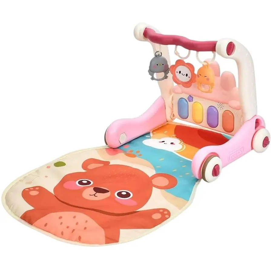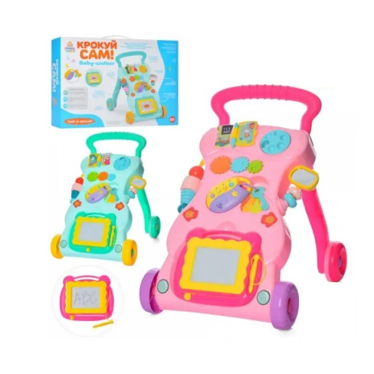 Дитяча каталка-ходунки 997-68A-B з музикою, світлом, трьома брязкальцями та килимком, рожева