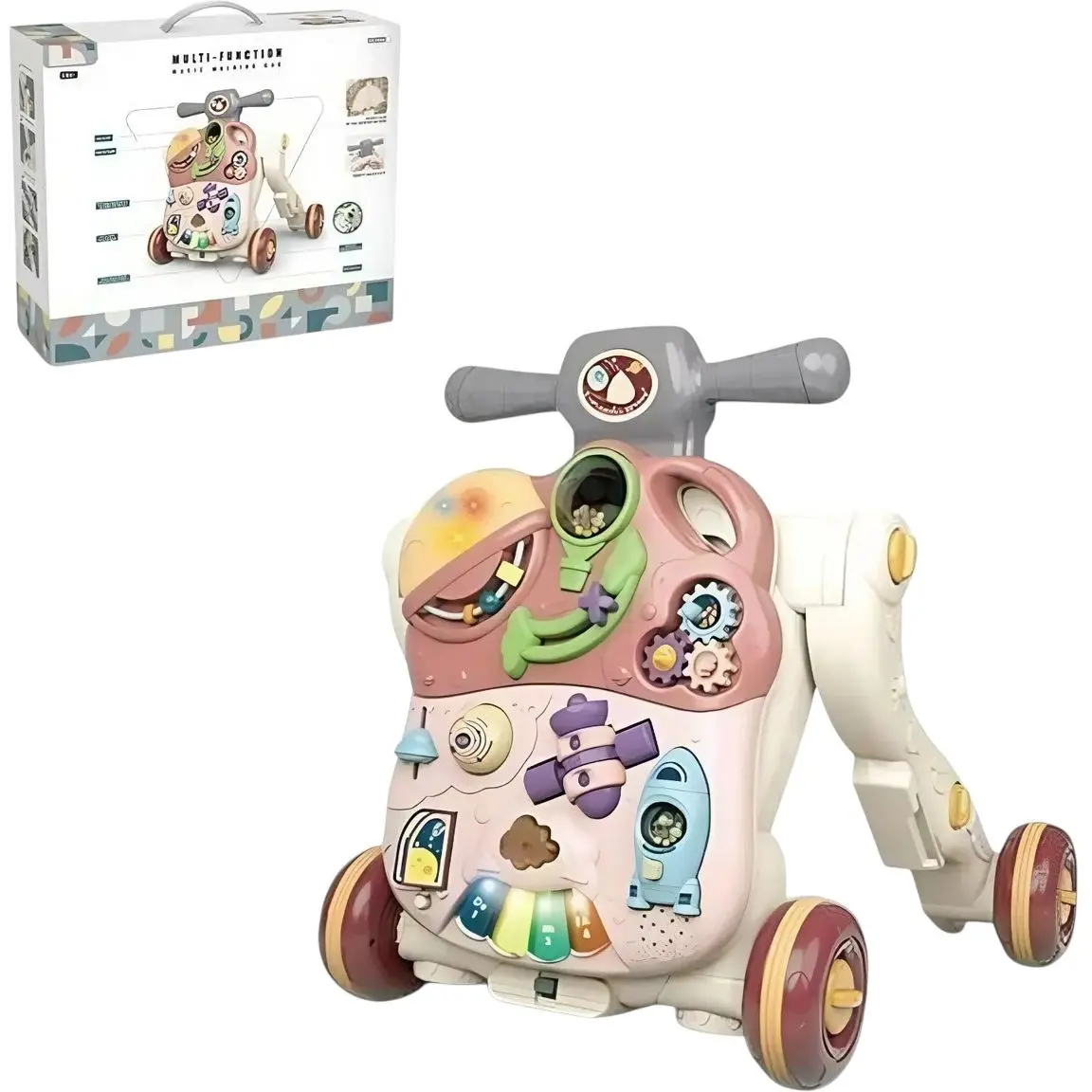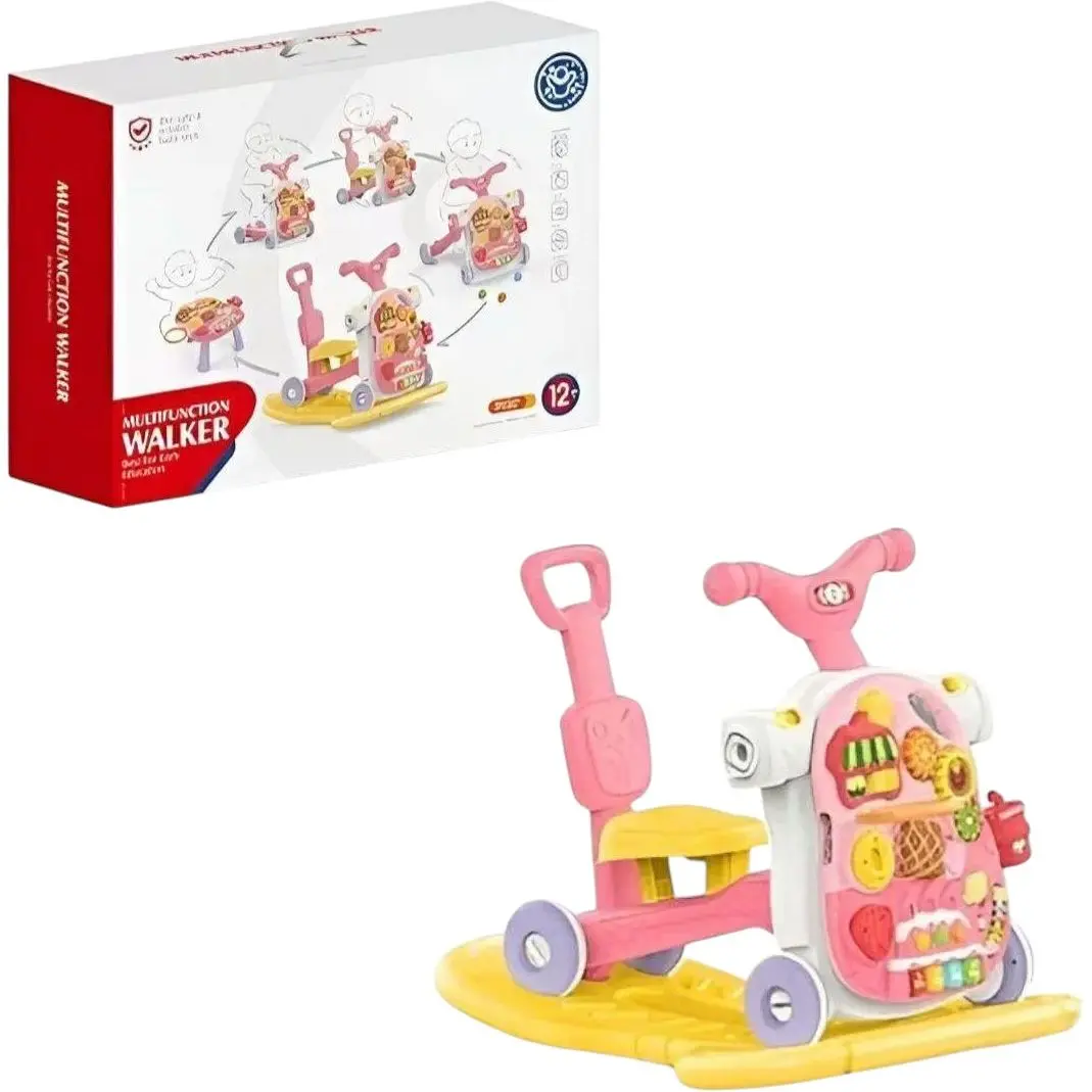Музична каталка-ходунки 5 в 1 з розвиваючою панеллю, рожевого кольору, з підсвічуванням та піаніно