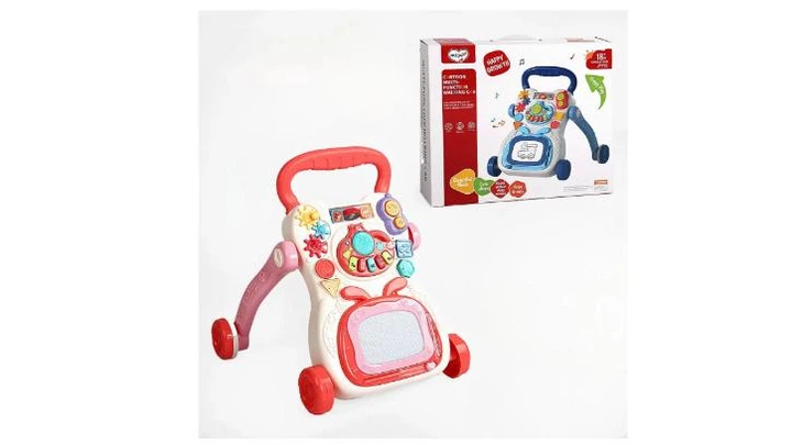 Дитячі ходунки-каталка з іграшками, піаніно, панеллю для малювання та телефоном, червоного кольору