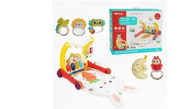 Дитячі ходунки-каталка з іграшками, піаніно, панеллю для малювання та телефоном, сірого кольору