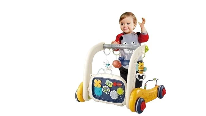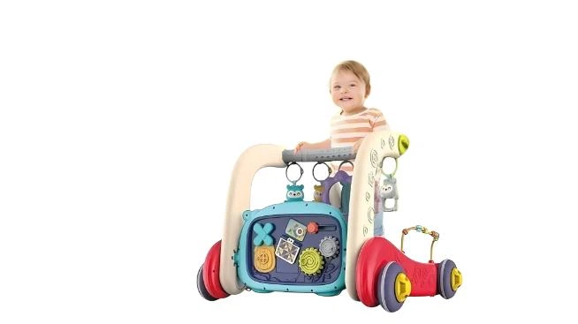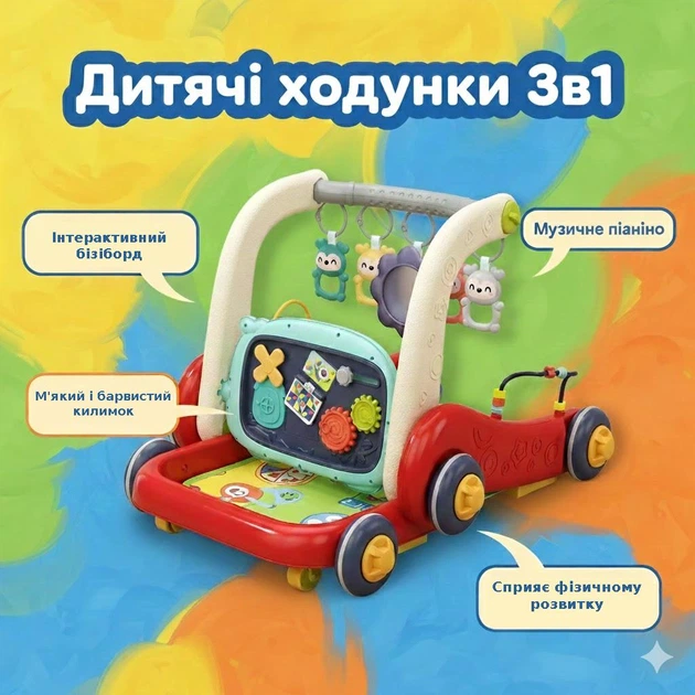 Дитячі ходунки 3в1 з ігровою панеллю, бізібордом, музичним піаніно та розвивальним килимком