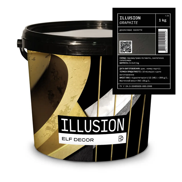 Декоративна штукатурка "яскравий шовк" ELF DECOR ILLUSION FANTASY графітовий (база GRAPHITE) 1кг