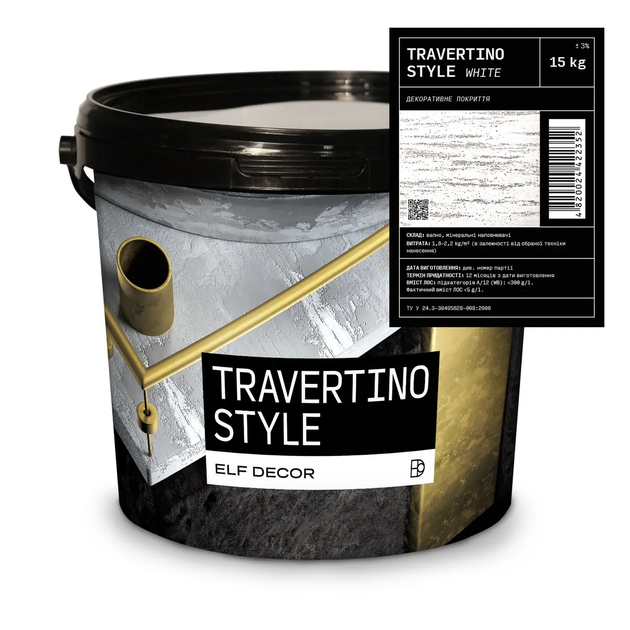 Штукатурка декоративна вапняна ELF DECOR TRAVERTINO STYLE WHITE 15 кг