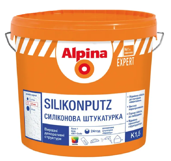 Штукатурка фасадна Alpina Expert Силіконова штукатурка K15 База 1, 25кг