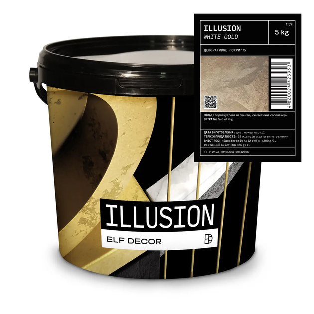 Декоративна штукатурка "східний шовк" ELF DECOR ILLUSION WHITE GOLD 5кг