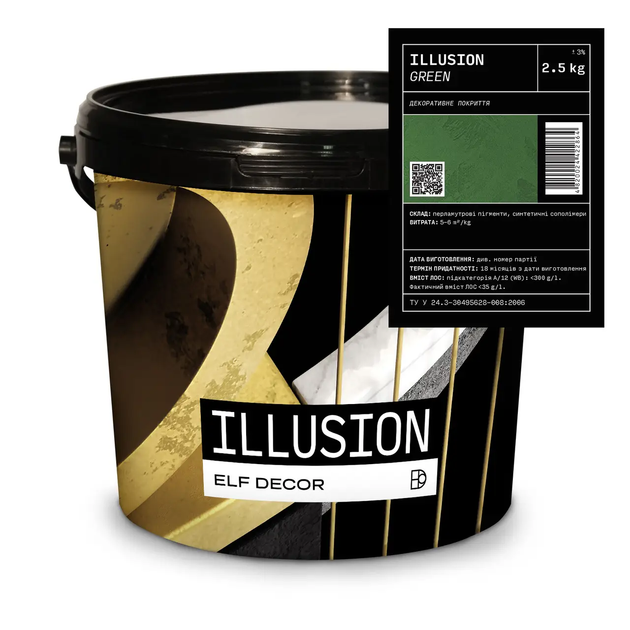 Декоративна штукатурка "яскравий шовк" ELF DECOR ILLUSION FANTASY зелений (база GREEN) 2.5кг