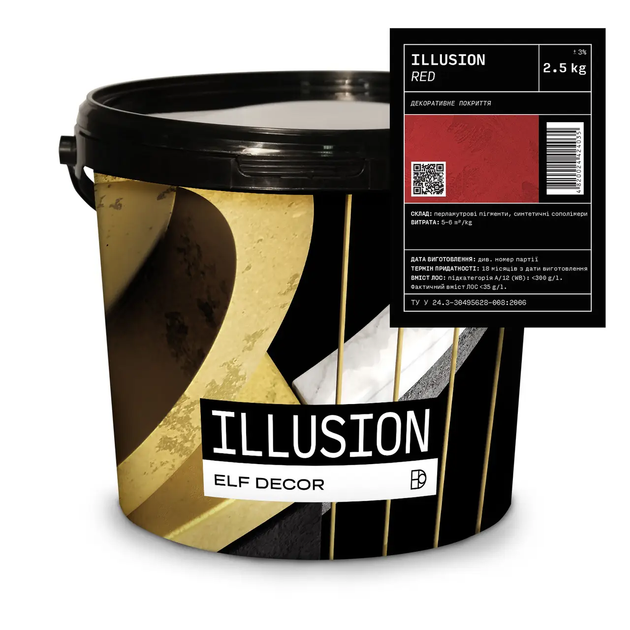 Декоративна штукатурка "яскравий шовк" ELF DECOR ILLUSION FANTASY червоний (база RED) 2.5кг