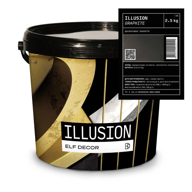 Декоративна штукатурка "яскравий шовк" ELF DECOR ILLUSION FANTASY графітовий (база GRAPHITE) 2.5кг