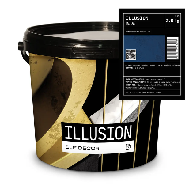 Декоративна штукатурка "яскравий шовк" ELF DECOR ILLUSION FANTASY блакитний (база BLUE) 2.5кг