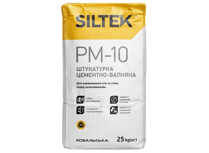 Штукатурка цементно-вапняна Siltek PM-10. Сіра (25кг)