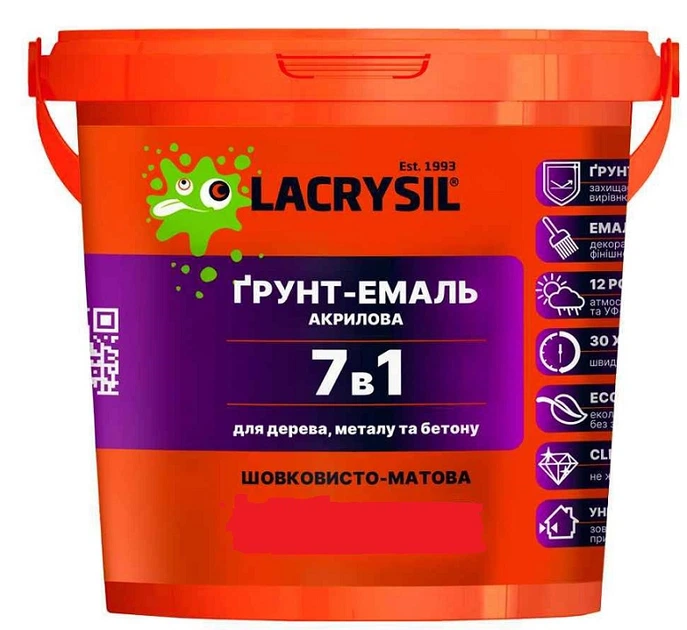 Ґрунт-емаль для дерева, металу та бетону Lacrysil RAL 9016 біла 0,9 кг