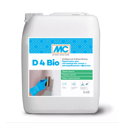 Ґрунтовка фунгіцидна адгезійна MC-Bauchemie D4 Bio, 5 л для поглинаючих основ з антигрибковим ефектом