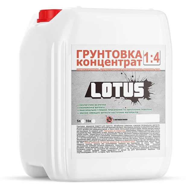 Грунтовка акрилова концентрат 1:4 зміцнююча глибокого проникнення Lotus 10 л