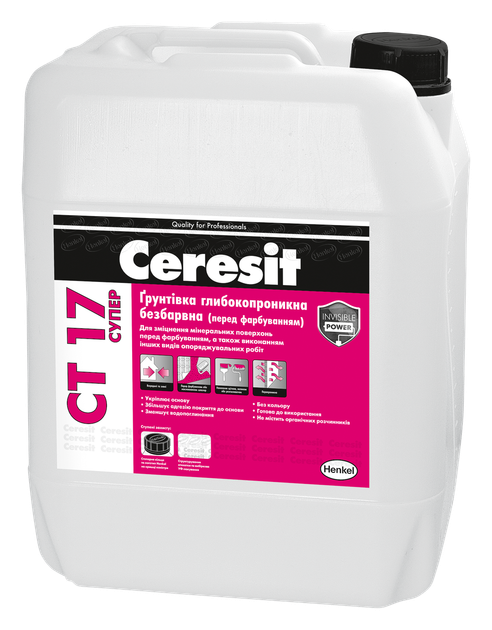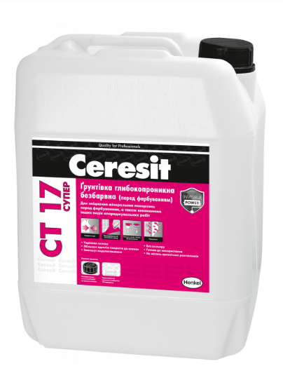 Грунтовка Ceresit СТ17 СУПЕР Глибокопроникаюча безбарвна (5л) (1568220)