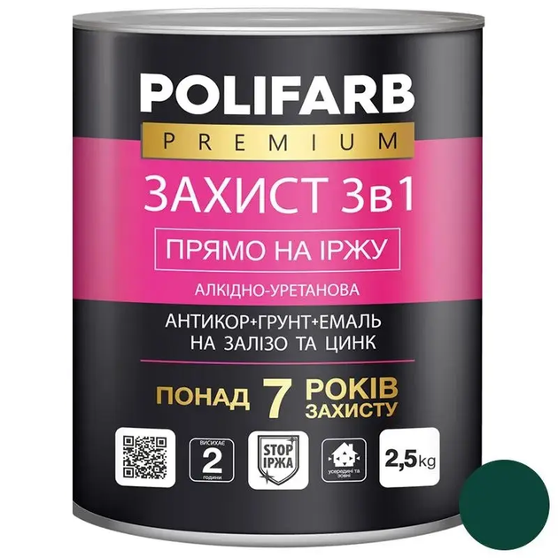 Захист 3 в 1 Polifarb, морська зелень, RAL6005, 2,5 кг