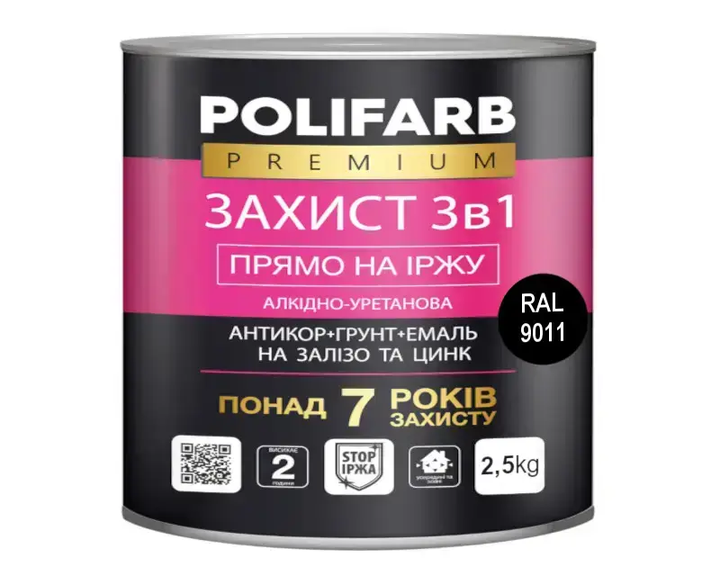Захист 3 в 1 Polifarb, чорний, RAL9011, 2,5 кг