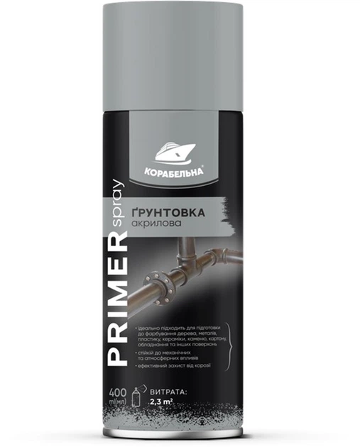 Грунтовка акрилова Корабельна Primer Spray 400 мл RAL 7038 Сірий (4823093912281)