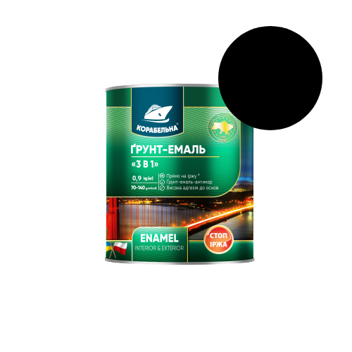Грунт-емаль прямо на іржу 3в1 Корабельна чорна 0,9 кг