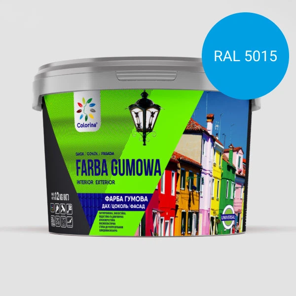 Фарба гумова для дахів, цоколів, фасадів Colorina Яскраво-блакитна (RAL 5015) 6кг