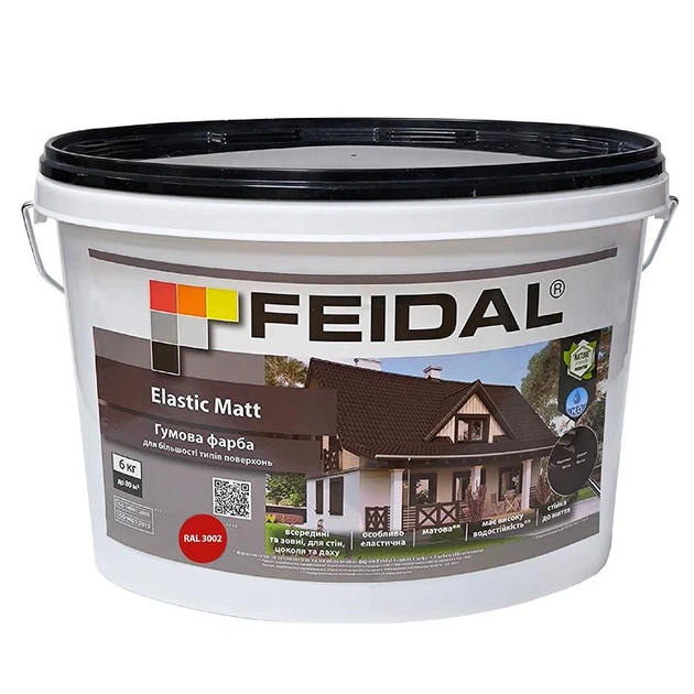 Гумова фарба Feidal Elastic Matt матовий захист від тріщин для внутрішніх та зовнішніх робіт RAL 3002 Червона 6 кг