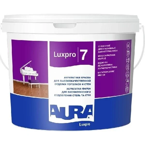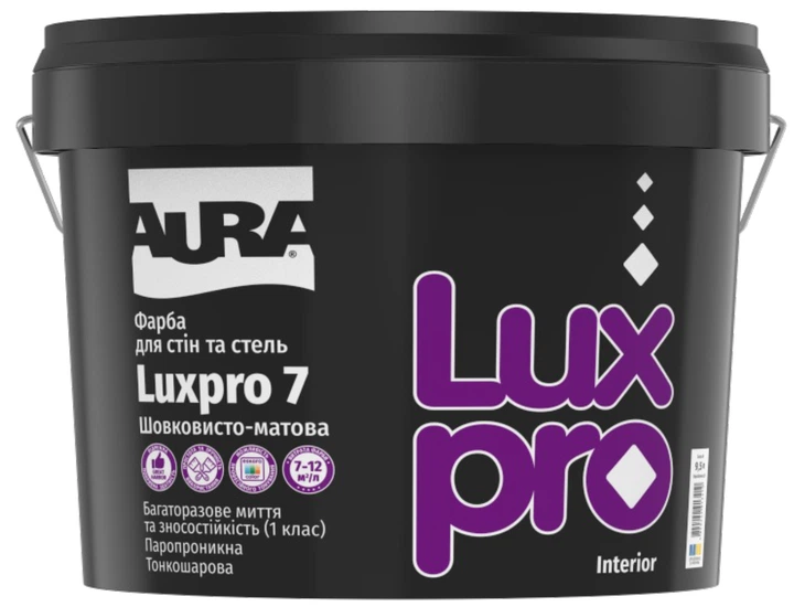 Фарба інтер'єрна акрилатна шовковисто-матова AURA Luxpro 7 (біла В1) 9.5л