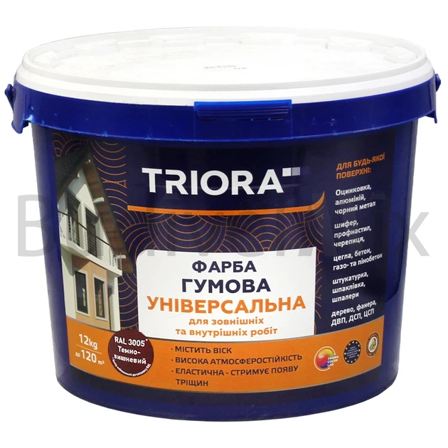 Фарба гумова TRIORA акрилова 12 кг RAL 3005 686 темно-вишнева