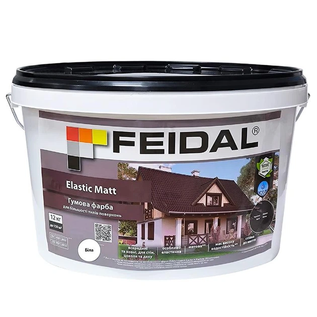 Фарба гумова Feidal Elastic Matt матова, захист від тріщин та вологи, для зовнішніх та внутрішніх робіт Біла 12 кг