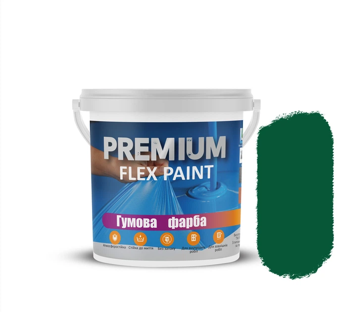 Фарба гумова супереластична надстійка «РабберФлекс» SkyLine Зелений RAL 6005 1,2 кг