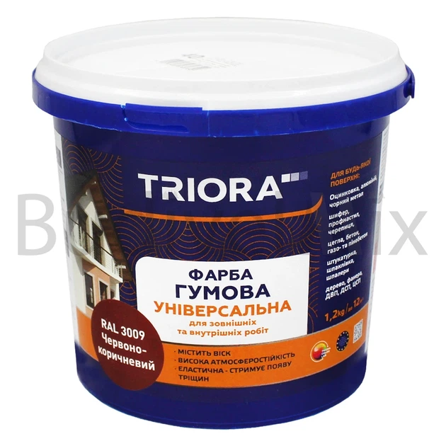 Фарба гумова TRIORA акрилова 1,2 кг RAL 3009 40 червоно-коричнева
