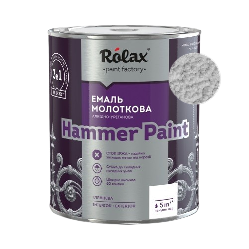 Емаль молоткова 3 в 1 Rolax HAMMER PAINT срібло 0,75 л.