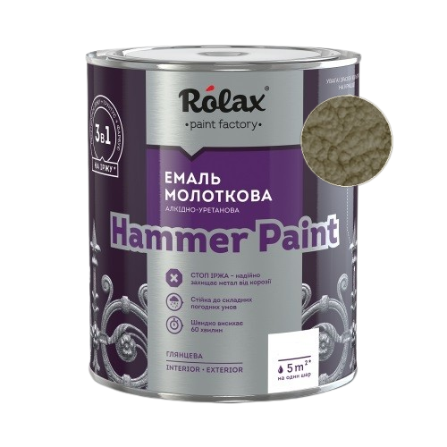 Емаль молоткова 3 в 1 Rolax HAMMER PAINT зелена 0,75 л.