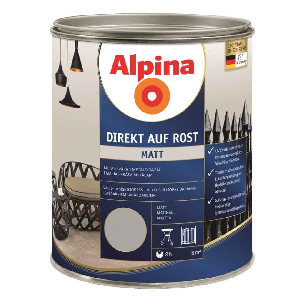 Емаль універсальна алкідна матова Alpina Direkt auf Rost RAL7001 Світло-сірий 2.5 л (936279) 936279