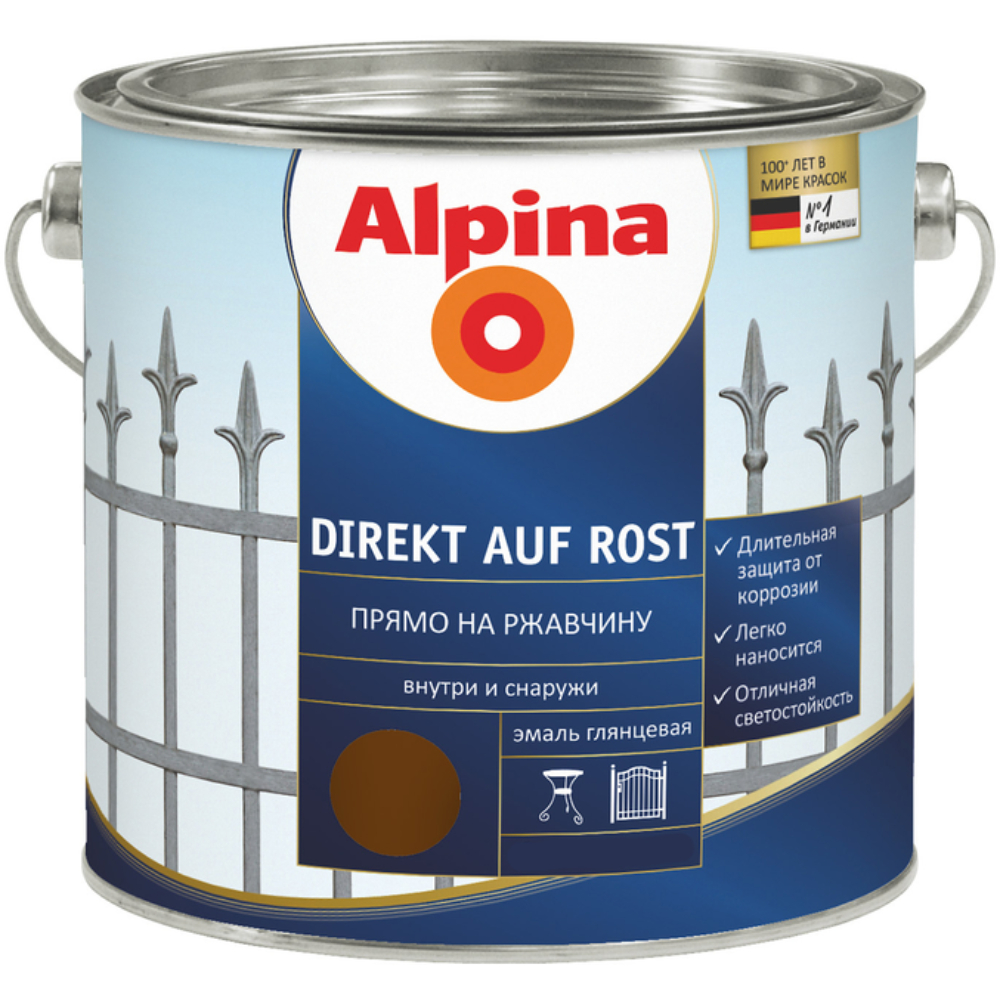 Емаль алкідна Alpina Direkt auf Rost RAL8017 Шоколадно-коричневий глянець 2.5 л 537325