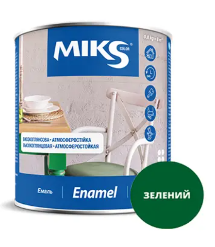Емаль алкідна глянсова MIKS Color (Зелена) 0,8 кг