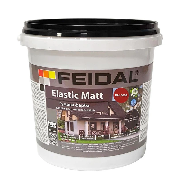 Фарба еластична Feidal Elastic Matt гумова матова для бетону, металу, дерева всередині та зовні RAL 3009 Червоно-коричнева 1