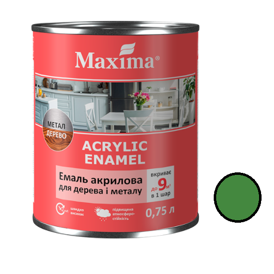 Емаль акрилова для дерева і металу Maxima весняна трава шовковисто-матовий 0,75 л (109829), Зелений,