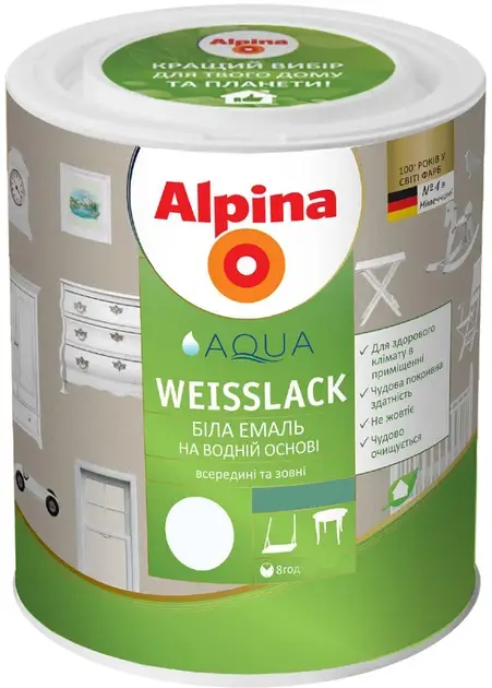 Емаль акрилова ALPINA AQUA WEISSLACK УКРАЇНА універсальна глянцева біла - база B1 0,75 л