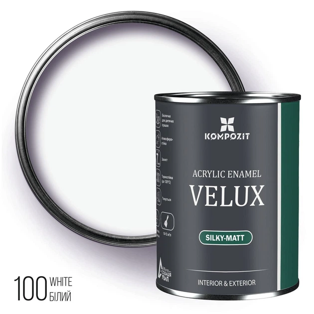 Емаль акрилова VELUX білий 100, шовковисто-матовий, 0,75 л