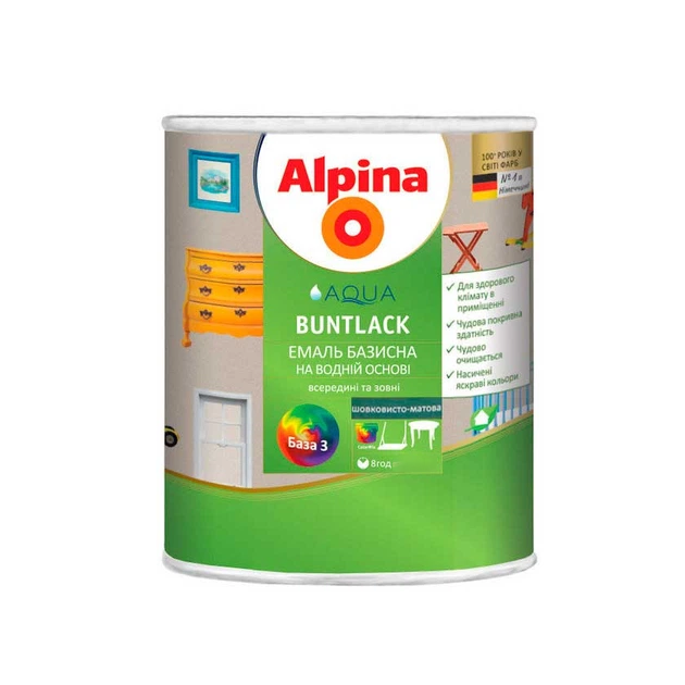 Емаль універсальна акрилова шовковисто-матова Alpina Aqua Buntlack База 3, 0.71л