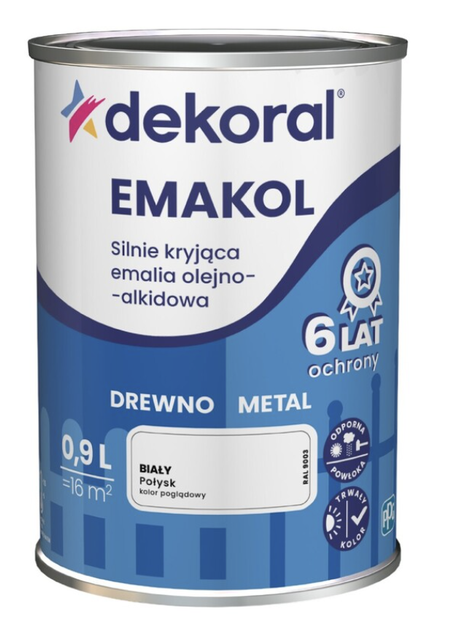 Емаль для дерева та металу Dekoral Emakol білий матовий RAL 9003, 0.9л