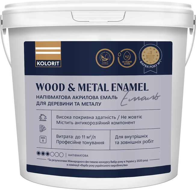 Емаль напівматова акрилова Kolorit Wood and Metal Enamel для деревини та металу 0.9 л (4823046207198)