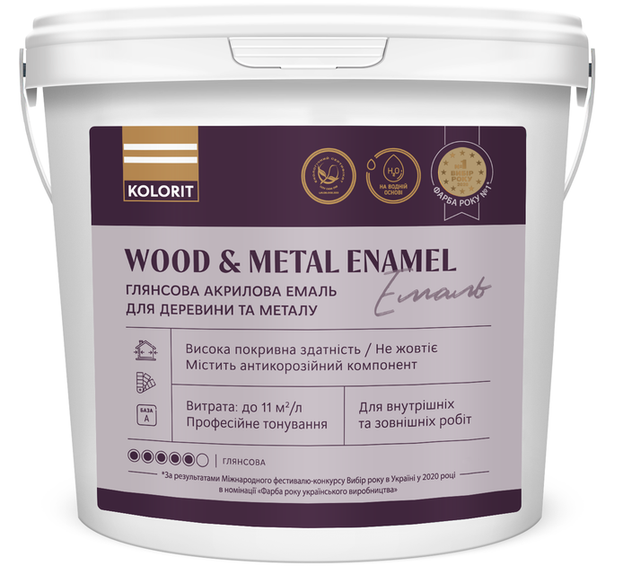 Емаль глянцева для дерева та металу Kolorit Wood and Metal Enamel (глянсова) 0.9л