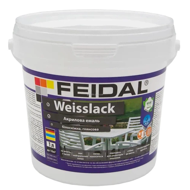Емаль глянсова Feidal Weisslack Біла акрилова для внутрішніх та зовнішніх робіт по дереву, металу, штукатурці 1 л
