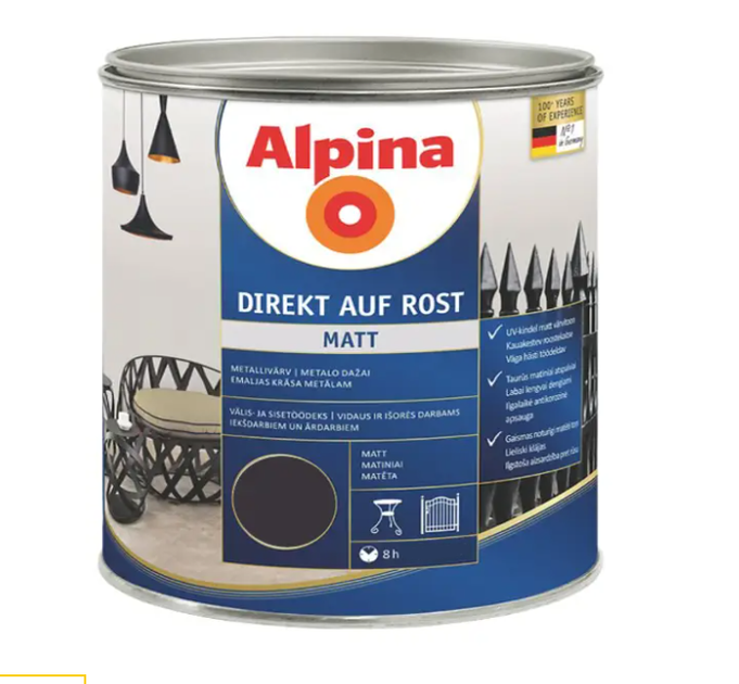 Емаль універсальна алкідна матова Alpina Direkt auf Rost RAL9005 Чорна 0.75л