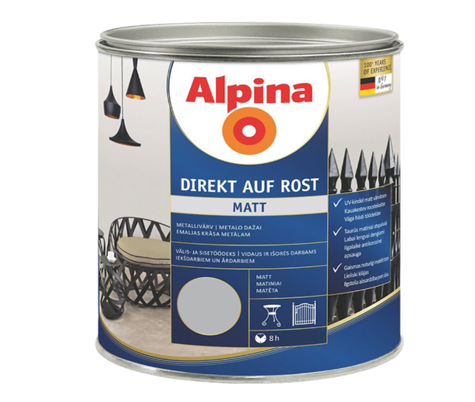 Емаль універсальна алкідна матова Alpina Direkt auf Rost RAL7001 Світло-сіра 0.75л