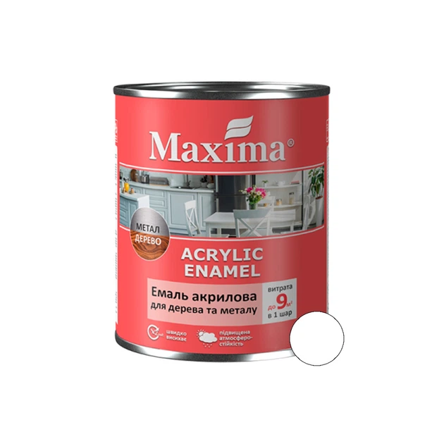 Емаль акрилова для дерева та металу Maxima біла глянцева 2,3 л