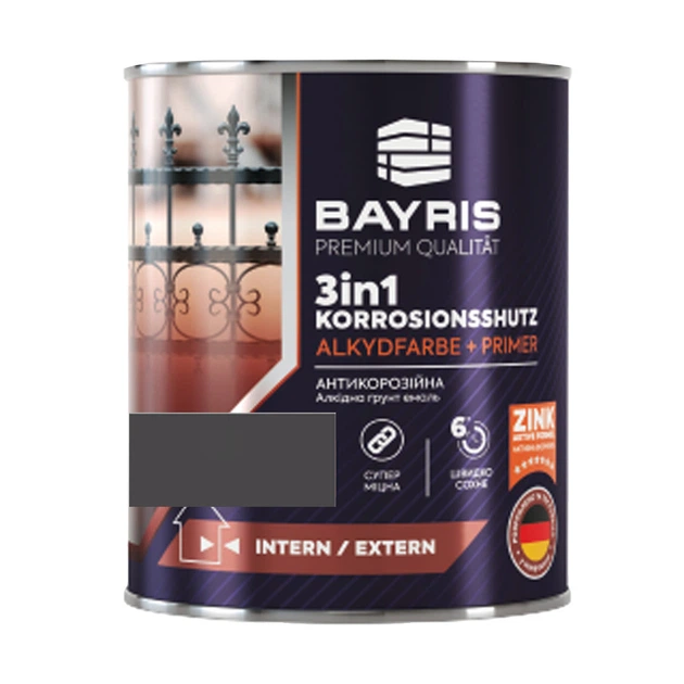 Емаль алкідна Bayris 3 в 1 сіра 2,7 кг