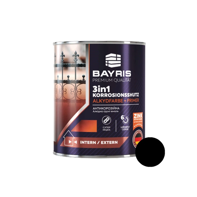 Емаль алкідна Bayris 3 в 1 чорна 3 кг