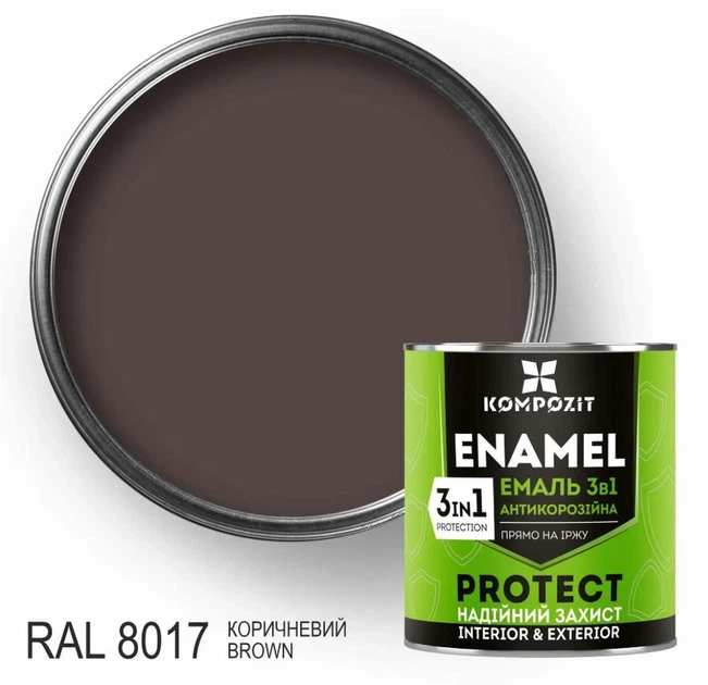 Антикорозійна емаль Kompozit Protect 3 в 1 RAL 8017 коричнева 2.7кг